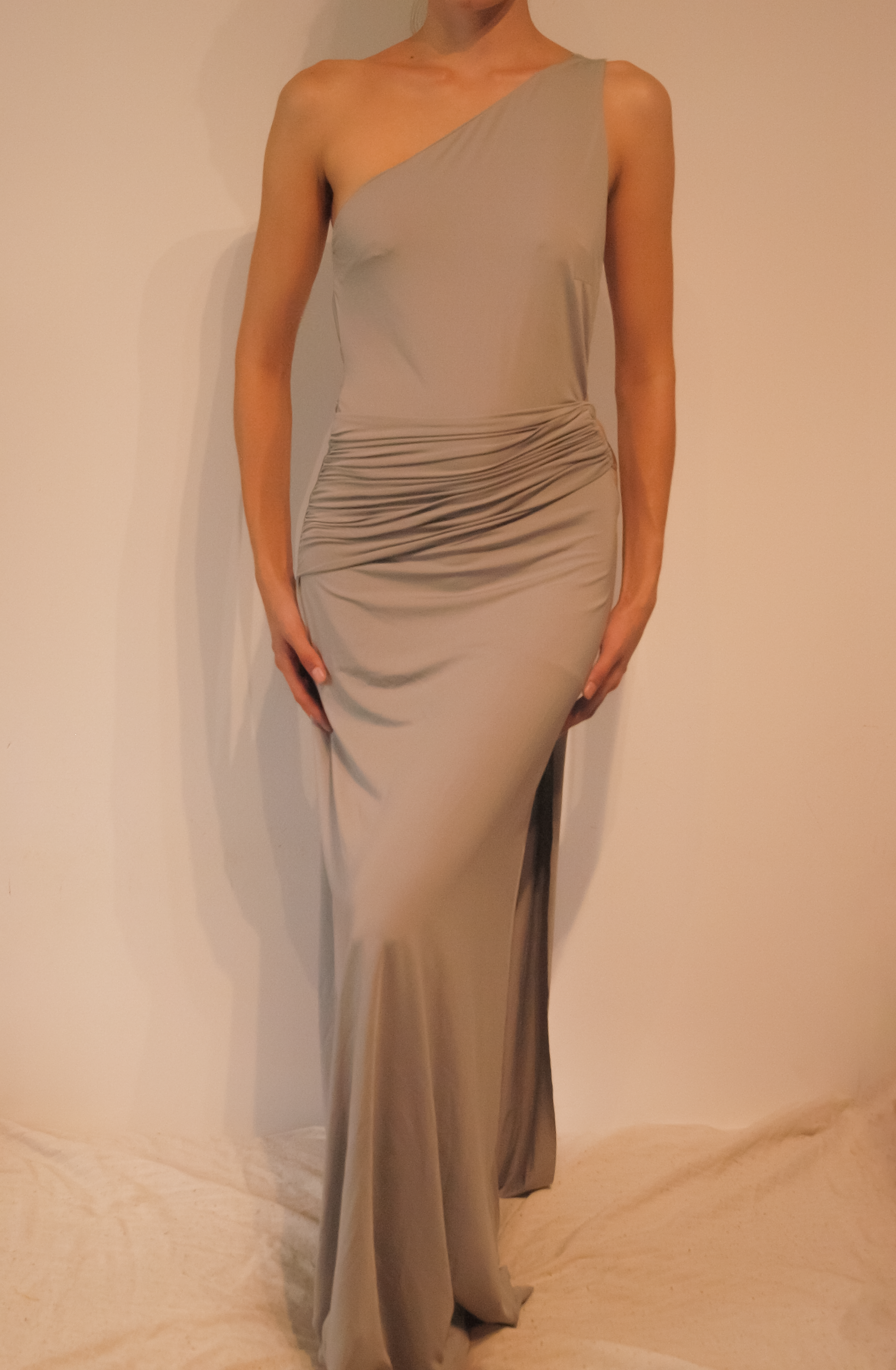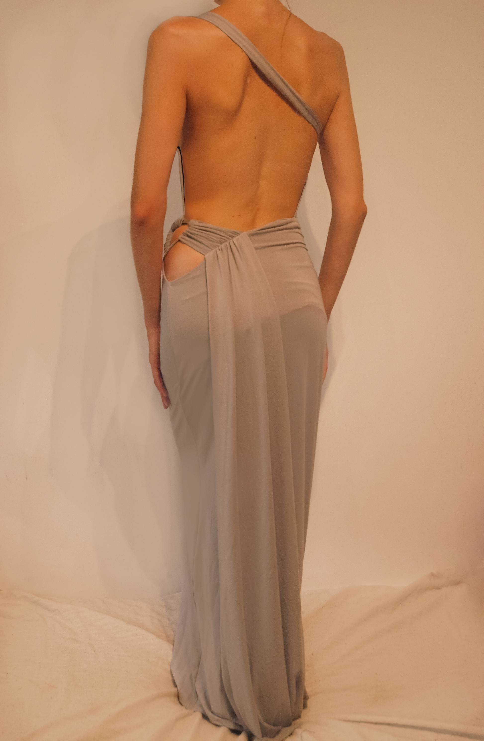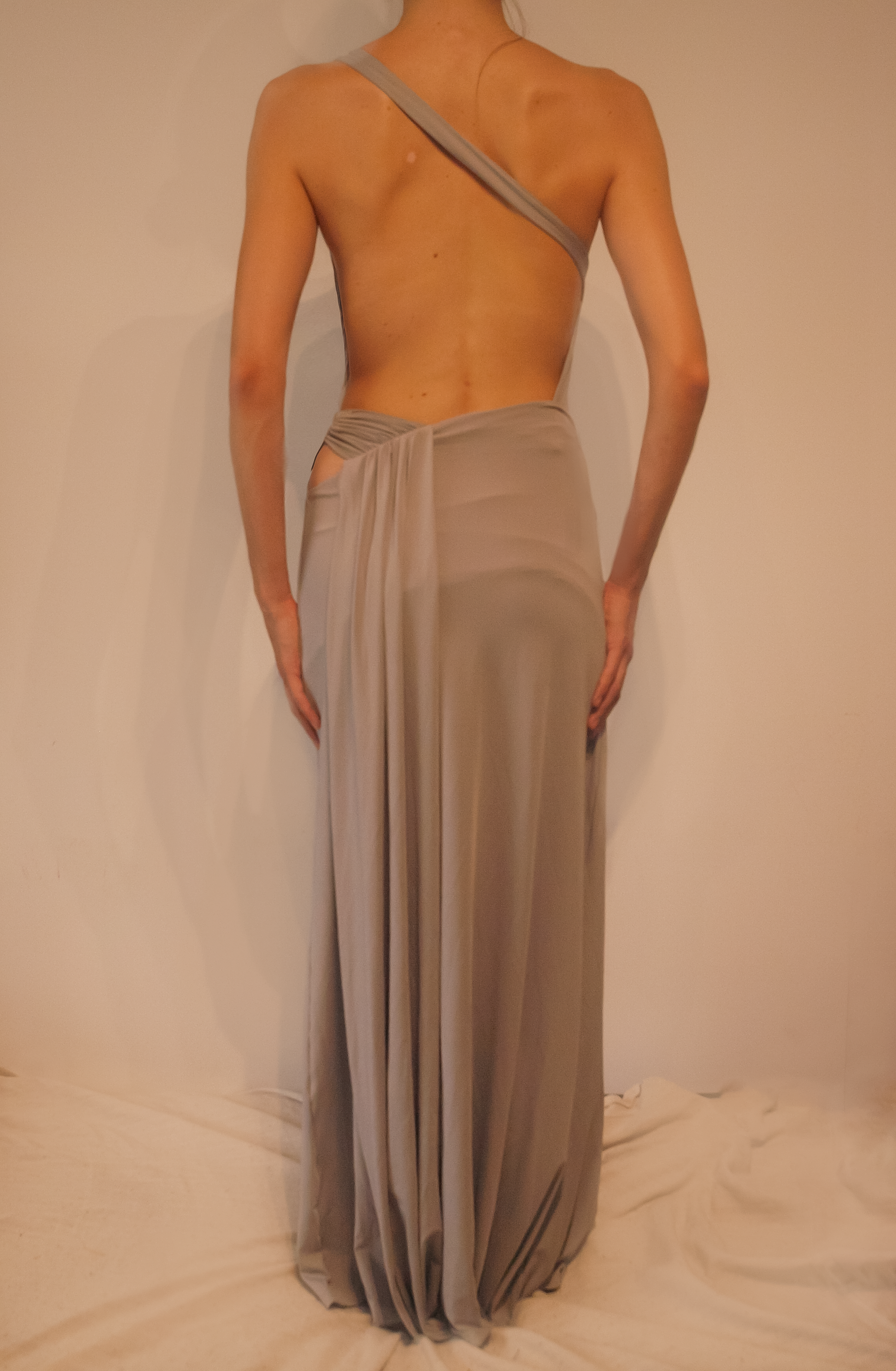 Haljina Grafitna Muza osmišljena je za žene koje žele ostaviti snažan dojam. Haljina dolazi u golublje sivoj nijansi, trenutno je IN ove sezone, dok asimetričan kroj s otvorenim leđima i bočnim izrezima stvara savršenu ravnotežu između elegancije i senzualnosti.
